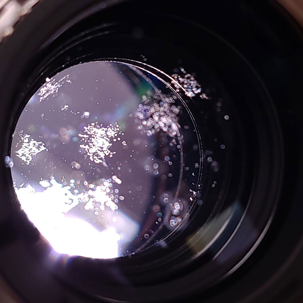 Early Stage: Fungus starts as small web-like spots or patches inside the lens glass. This reduces brightness and contrast, and will impact the lens’s resale value.